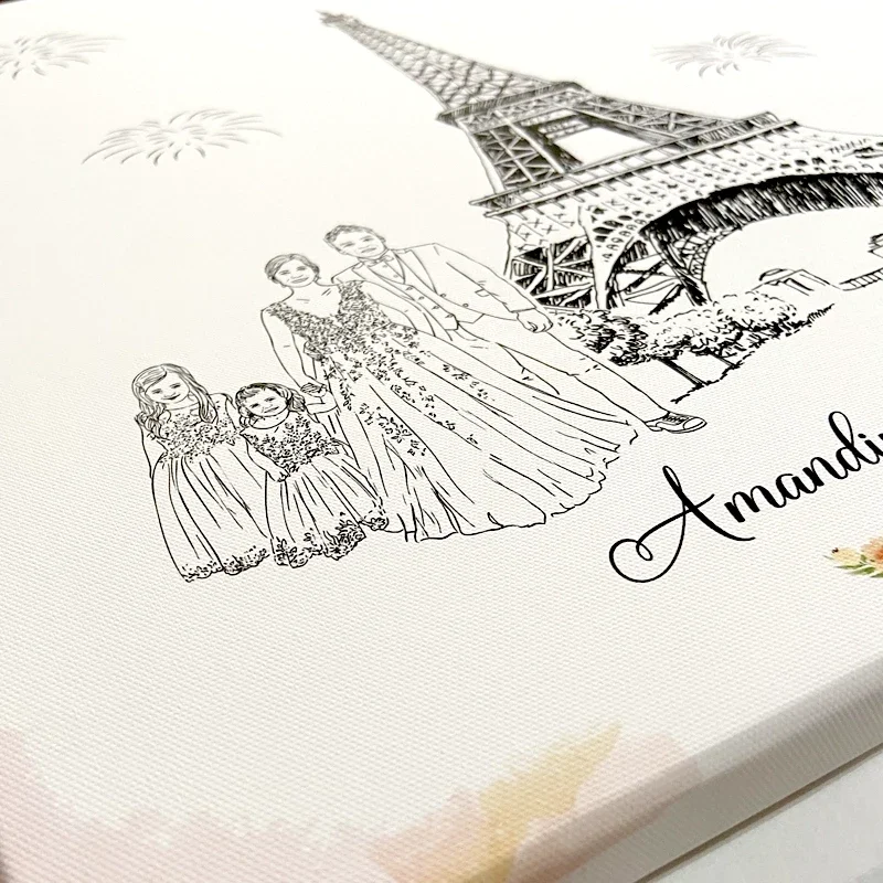 A partir de vos photos qu’il est possible de combiner, une illustration personnalisée est créée pour fixer ce moment unique.